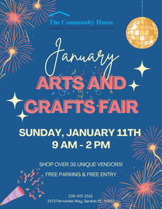 Join us for the January Arts & Crafts Fair, indoors at the Community House! Support your favorite local artists and find a fun selection of uniquely Sanibel items at this event.