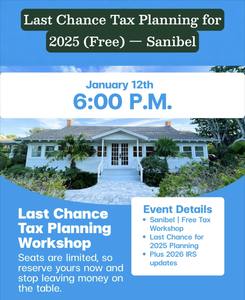 Join Harborstone Point Advisors for Last Chance Tax Planning for 2025, a 30 minute workshop covering key deadlines (IRA, HSA, SEP/Solo 401(k)), charitable strategies, and business-owner considerations. This will be followed by Q & A.