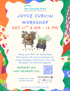 Back by popular Demand! Join Joyce Curvin in this art workshop and create an adorable owl from upcycled materials!