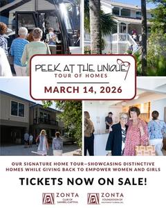The Zonta Club of Sanibel-Captiva and the Zonta Foundation of Southwest Florida are delighted to announce our 2026 PEEK at the Unique . Take a “Peek” this year at two waterfront gems in a hidden corner of Sanibel, a beautiful new residence in the making that illustrates the island’s rebirth, and finally, a joyful home and garden overflowing with the pure, happy spirit of life on our island. Your participation supports women and girls through the Zonta Foundation of Southwest Florida!