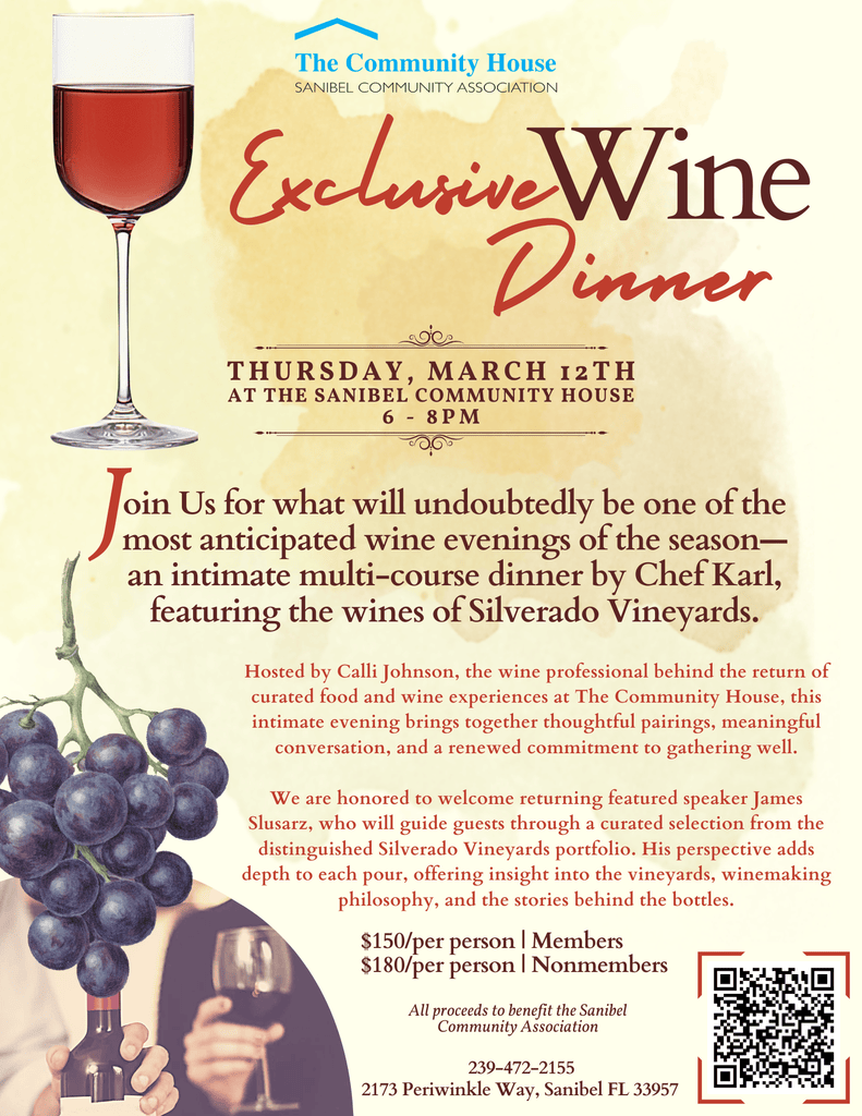 Hosted by Calli Johnson, the wine professional behind the return of curated food and wine experiences at The Community House, this intimate evening brings together thoughtful pairings, meaningful conversation, and a renewed commitment to gathering well.